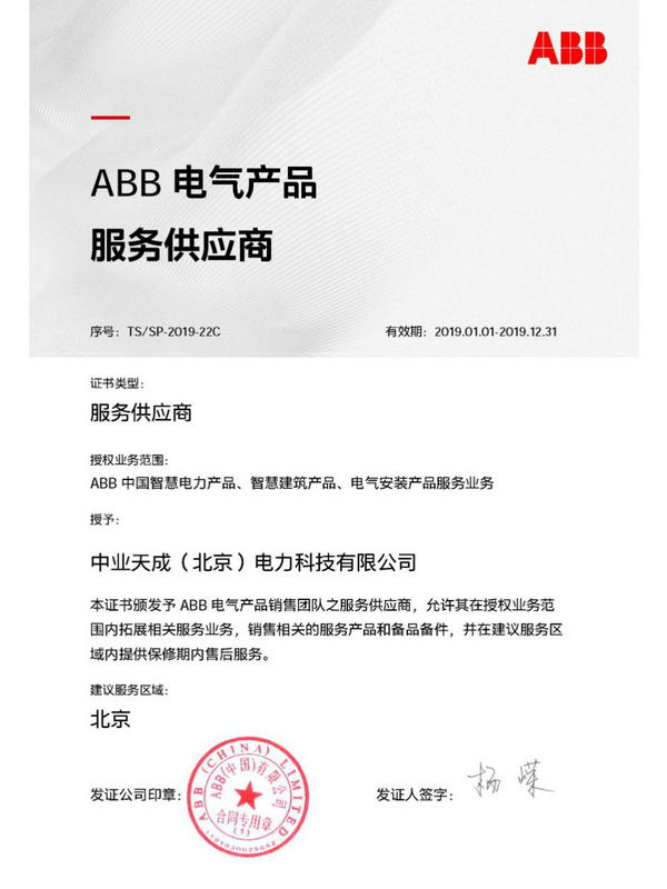 作為ABB的戰(zhàn)略合作伙伴,中業(yè)天成不僅可以直接銷售ABB的全部電氣產(chǎn)品和服務(wù),還將為用戶提供更加完備、優(yōu)質(zhì)、高效的配套服務(wù),包括產(chǎn)品選用、現(xiàn)場安裝、指導(dǎo)、調(diào)試、維修、更換以及日常維護(hù)培訓(xùn)、產(chǎn)品技術(shù)咨詢等。