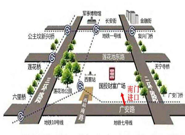 經(jīng)廣安路進(jìn)入國投財(cái)富廣場南門后直行100米,由車庫A口進(jìn)入地下停車場,沿標(biāo)識行至B3